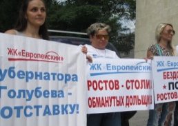 На Фонтанной площади в городе Ростове-на-Дону состоялся митинг, на котором собрались дольщики ЖК «Европейский», ЖК «Баррикадная», также инвесторы жилых объектов на ул. Зорге, Штахановского и в Малом переулке. Как сообщает «Кавказский узел» и сами участники протеста, в акции приняли участие 200 человек.